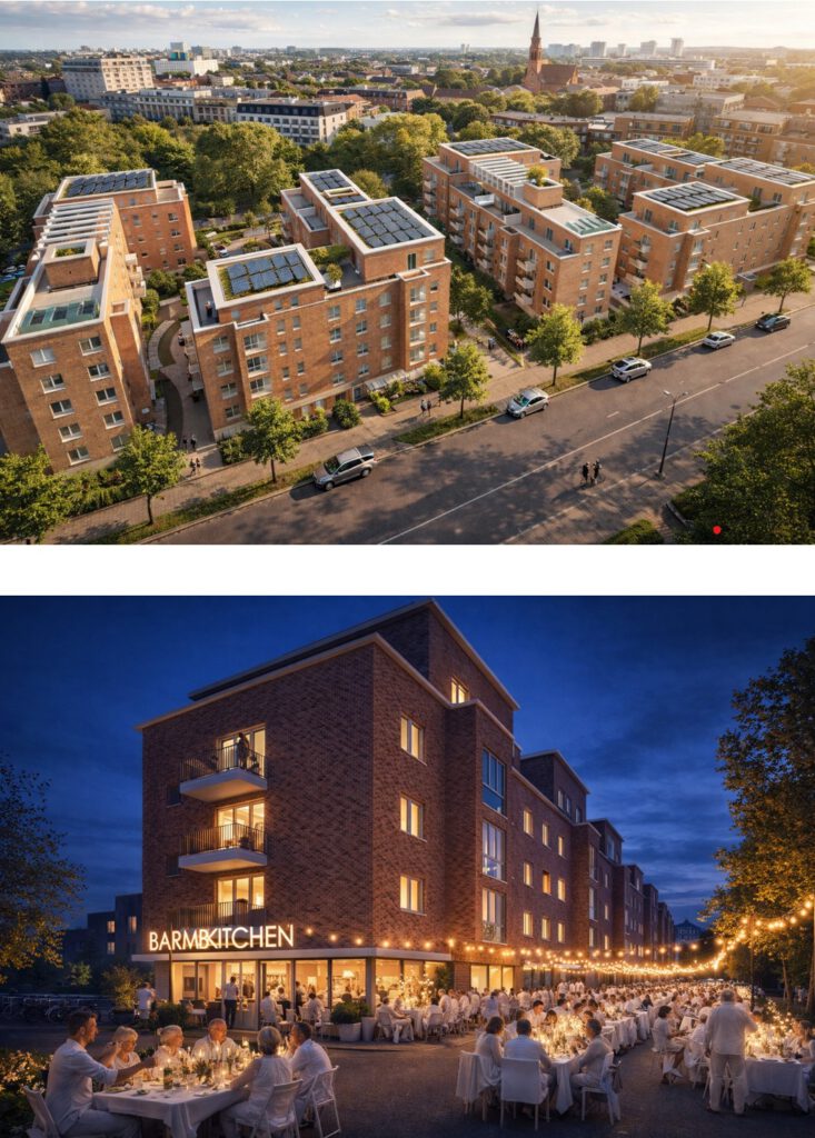 Im Rahmen der Konzeptausschreibung der Stadt Hamburg haben wir mit BIOTOP BARMBEK ein Quartierskonzept entwickelt, das zwei Ziele konsequent zusammenführt: ein lebendiges, inklusives Miteinander und eine robuste, wirtschaftliche Bauweise – ohne Abstriche bei Atmosphäre, Nutzungskomfort und stadträumlicher Qualität. Ein lebendiges Quartier entsteht nicht „von selbst“. Der Anspruch des Auslobers an ein lebendiges Quartier lässt sich in drei Kernpunkten fassen: soziale Mischung, verlässliche Nachbarschaftsstrukturen und zukunftsfähige ökologische sowie mobilitätsbezogene Lösungen. Entscheidend ist dabei weniger das Versprechen, sondern die Umsetzung im Alltag: Räume, die genutzt werden, Angebote, die getragen werden, und Freiräume, die Sicherheit, Aufenthaltsqualität und Identität erzeugen.
