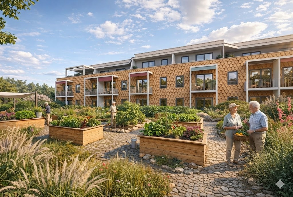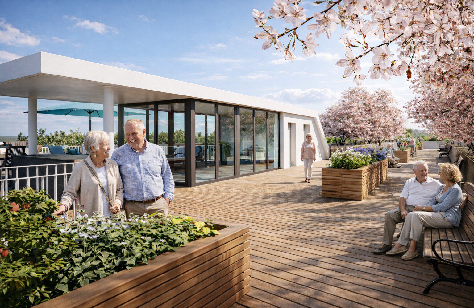 88 barrierefreie Apartments für Servicewohnen – selbstbestimmt, inklusiv und mit Hotelservice, Dachgarten mit Urban Gardening.