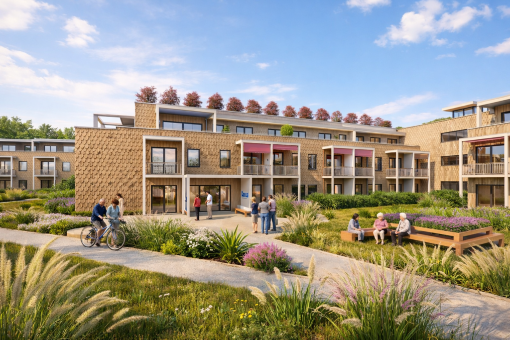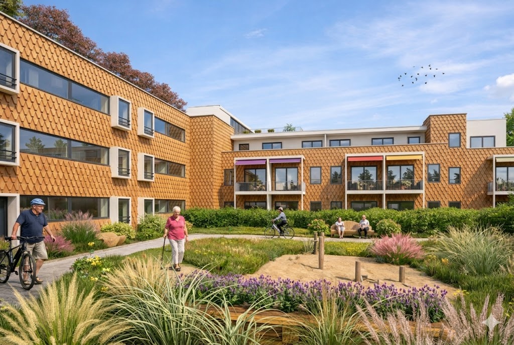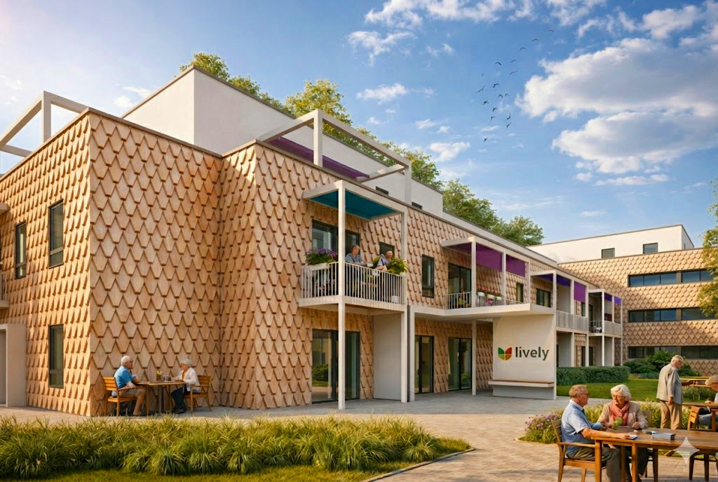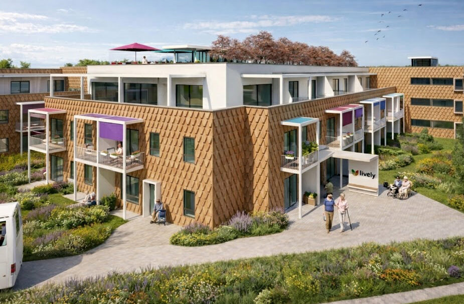 In Brietlingen bei Lüneburg entstand der Entwurf für das Produkt Lively, ein Gebäude mit 88 barrierefreien Wohneinheiten, das Betreutes Wohnen konsequent als selbstbestimmtes Zuhause versteht – ergänzt um Serviceangebote, die man aus der Hotellerie kennt. Gemeinsam mit dem Betreiber wurde ein Konzept entwickelt, das nicht „Versorgung“ in den Mittelpunkt stellt, sondern Lebensqualität, Wahlfreiheit und Alltagserleichterung: ankommen, orientieren, zu Hause sein – und bei Bedarf Unterstützung dazuschalten. Lively steht für ein offenes Quartier und möchte eine neue Wohnform für das Leben im Alter anbieten und glaubt an ein offenes Quartier und starke lokale Strukturen.