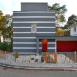Das Haus orientiert sich an der Idee des Bauhauses, ohne historisierend zu sein. Klare Linien, reduzierte Formen und ein markantes Flachdach bestimmen die Silhouette. Der Baukörper ist in differenzierte Kuben gegliedert, die sich in Höhe und Tiefe leicht staffeln und so ein spannungsvolles Spiel aus Volumen und Proportion erzeugen. Jeder Kubus trägt eine eigene inhaltliche Bedeutung: Die Garage fügt sich selbstverständlich ein, der Koch- und Essbereich bildet das kommunikative Herz des Hauses, während der zweigeschossige Wohn- und Schlafbereich als vertikale Dominante Präsenz zeigt. Architektur wird hier nicht addiert, sondern komponiert.