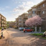 Die familienfreundlichen ca. 200 m² bis 210 m² großen Wohnungen erstrecken sich über 4 Ebenen inklusive ausgebautem Dachgeschoss und Dachterrassen. Die Dächer sind durchgehend begrünt und dienen der Rückhaltung von Niederschlagswasser. Damit wird das nahe Wohnmikroklima deutlich verbessert.Die einzelnen Wohneinheiten verfügen über fünf Zimmer mit einer hohen Standardausstattung wie: Fußbodenheizung, ebenflächige Duschen sowie auskragende Erker. Die privaten Gärten und Terrassen sind zu den Grünräumen des Quartiers ausgerichtet und bieten den Bewohnern das Privileg des direkten Landschaftsbezugs.